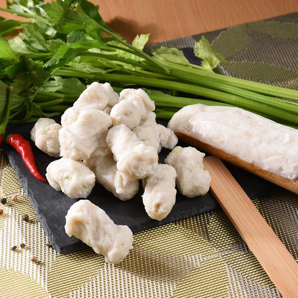 ✧特選魚漿 ✧新鮮花枝肉塊 ✧芹菜增添香氣 ✧食用方式:煮湯·烤·火鍋 ✧保存方式:-18度C以下冷凍